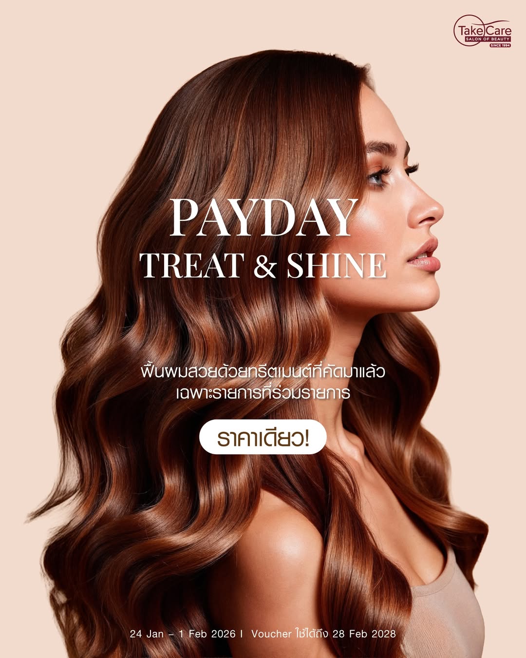 Take Care Salon of Beauty PAYDAYTREAT & SHINE ฟื้นผมสวยด้วยทรีตเมนต์ที่คัดมาแล้ว เฉพาะรายการที่ร่วมรายการ มอบของขวัญความงามและความเงาง