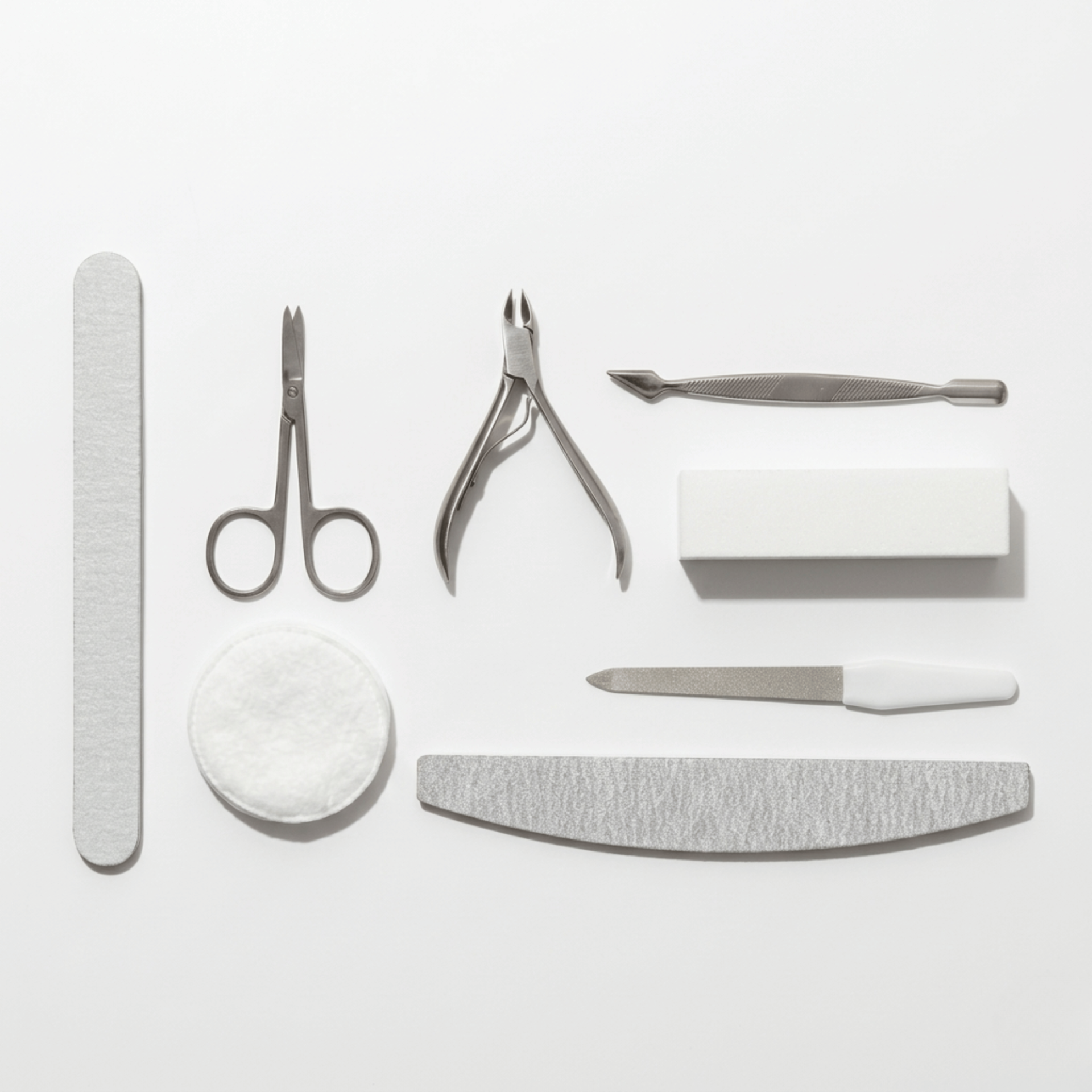 - ใช้ตะไบเก็บมุมให้มน โดยอุปกรณ์ที่ใช้ ต้องเป็นอุปกรณ์สำหรับการแคะเล็บขบและต้องมีความสะอาด ได้แก่ ฟุชเชอร์ กรรไกรตัดเล็บปลายแหลม และกรรไกรตัดหนัง